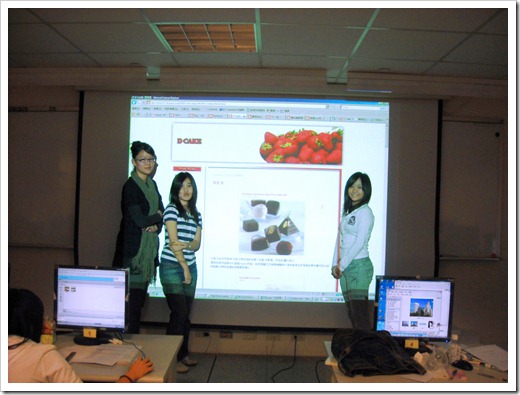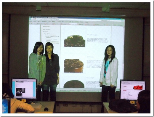 金甌女中的學員3人為一組,期末部落格專題名稱:下一站sweetly,網址為:http://peiyungirl.blogspot.com/,主要介紹巧克力類的甜點。