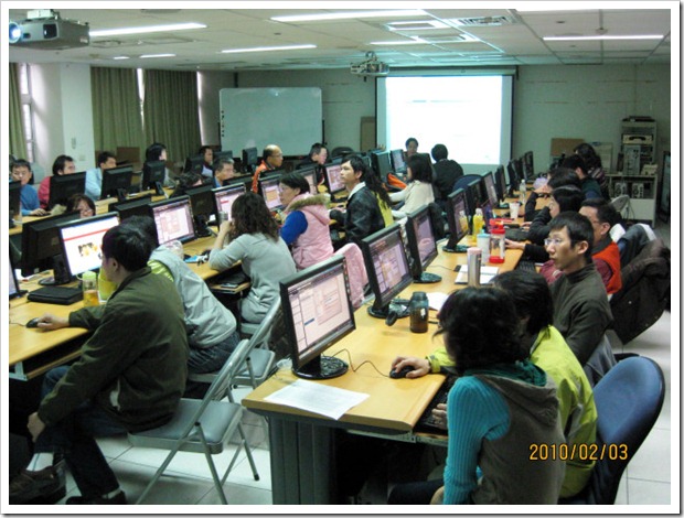 下面前三張圖是第一天上課的實況,大約有超過40位老師來參加,以電腦現場教學來說算是還蠻大班的編制。