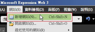 接著請您開啟Expression Web,選擇「網站」/「開啟網站」。