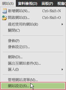 學習完下載運用網站套件範本後,若您已經可以自行設計網站並運用DWT範本架構,且也想要將自己設計完成的網站,分享給工作上的同事、好友做後續其他開發修改,則您可以在開啟此網站時,選擇「網站」/「匯出至網站套件」。