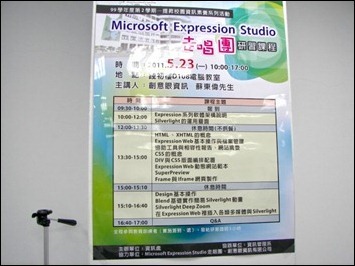這場雖然參加的人數不多,但校方很重視,除了黃主任有參加之外,課程的客服人員以及專案單位的人員都有參加,尤其是課程的承辦人員們,未來校方可能有意要引進微軟Expression Studio系列軟體的課程,這場也算是軟體功能的說明會。