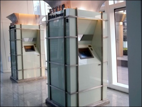 原來要到旁邊有好幾台類似ATM機器的訪客發卡機去做操作,一開始螢幕上會有中文與英文的語系介面可供選擇,接著要輸入你所要去的樓層數字,會出現該樓層的廠商名稱,點選後會聯繫該廠商進行通話,若該廠商願意讓你上來,則機器會發一張通行卡出來給你,這樣的模式我想是為了避免被不當的廣告拜訪行銷吧~!